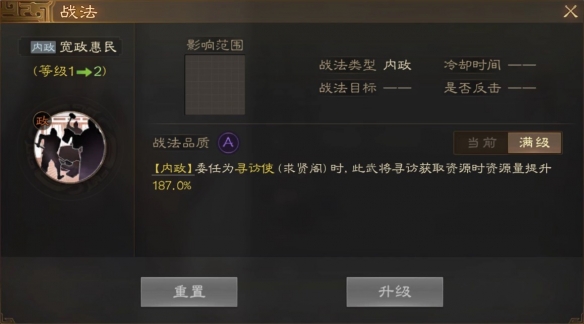 [内政]委任为寻访使(求贤阁)时,此武将寻访获取许源时许源量提升187.0%