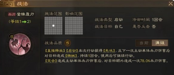 [突击]造成主动单体兵刃伤害后,对目标额外造成一次78.0%兵刃伤害。