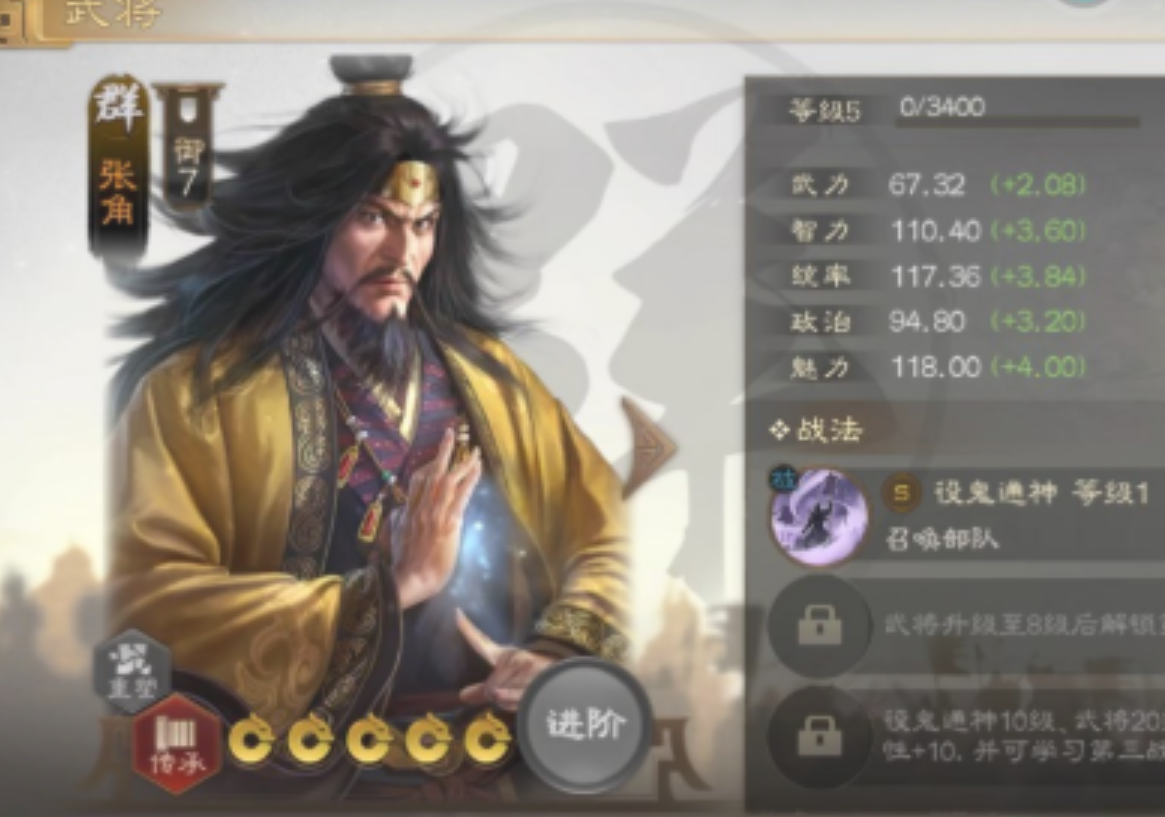 开荒前期很难上高统御阵容,因此吕布董卓这些都不适合,最多上阵一个张角走召唤流开荒,这套阵容是很多玩家在S1赛季测试过的群雄开荒阵容,依靠华佗的回复和召唤物开荒,因此强度还是非常不错了,如果你们没有更多比较厉害的武将可以使用一下。