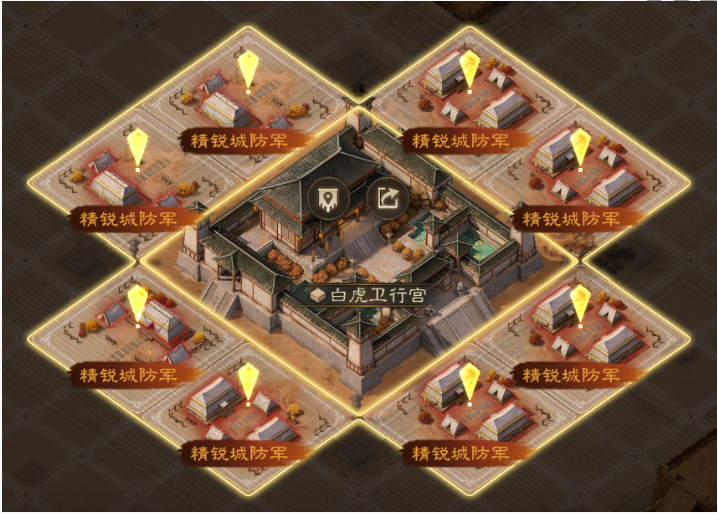 卫城的行宫需先攻占城门才能进入卫城,再击溃行宫外六座精锐城防军;
