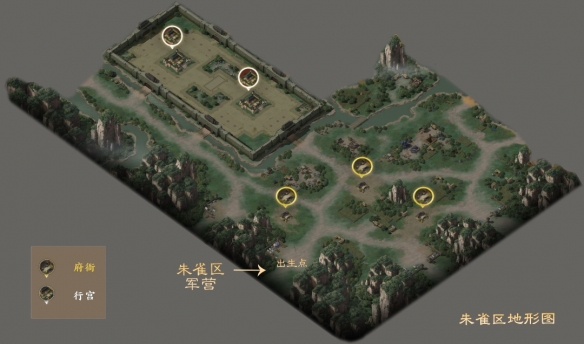 朱雀区位于【逐鹿之邑】南侧,主南明离火,延续了巴蜀的地貌,植被翠绿,山峦奇异。一座府衙就在出生点门口,另外两座府衙在东方。