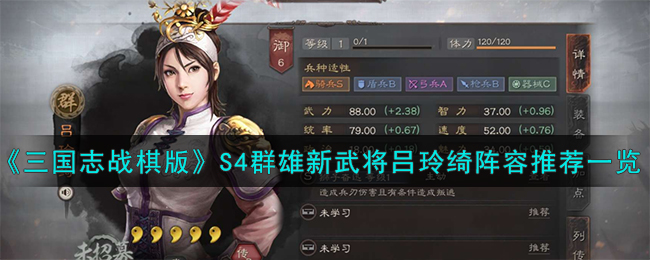 以上就是小编整理带来的《三国志战棋版》S4群雄新武将吕玲绮阵容推荐一览攻略,更多相关游戏攻略,请关注手游网!