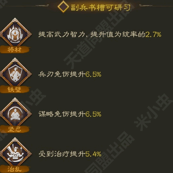 坚忍:使自身受到谋略伤害降低7.2%