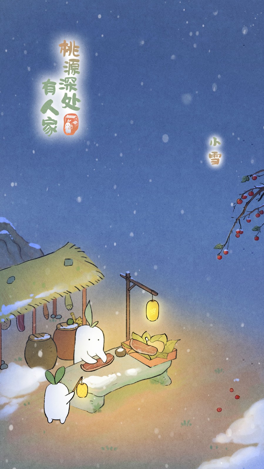 《桃源深处有人家》为一款国风田园模拟经营手游。游戏主打国风山水田园题材,融合模拟经营玩法,让每一位玩家在青绿山水国风世界中悠然进行田园经营建设,打造梦中的专属“桃源“,在恬淡的诗意山居生活中,重拾内心的那份安宁与平静。今日是二十四节气·小雪,游戏官方为大家发布了小雪壁纸,喜欢的来领取一下吧!