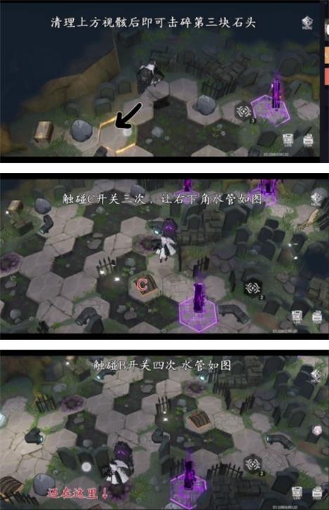 2.下方多余的两个石块击碎后开启开关更方便,但是没有实际作用,所以图中没有