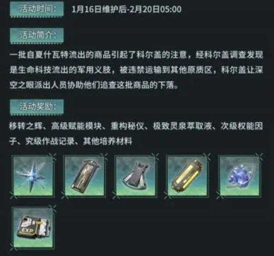 以上就是小编整理带来的《深空之眼》3.10版本「影杀」义体缉查活动内容一览,更多相关游戏攻略,请关注手游网!