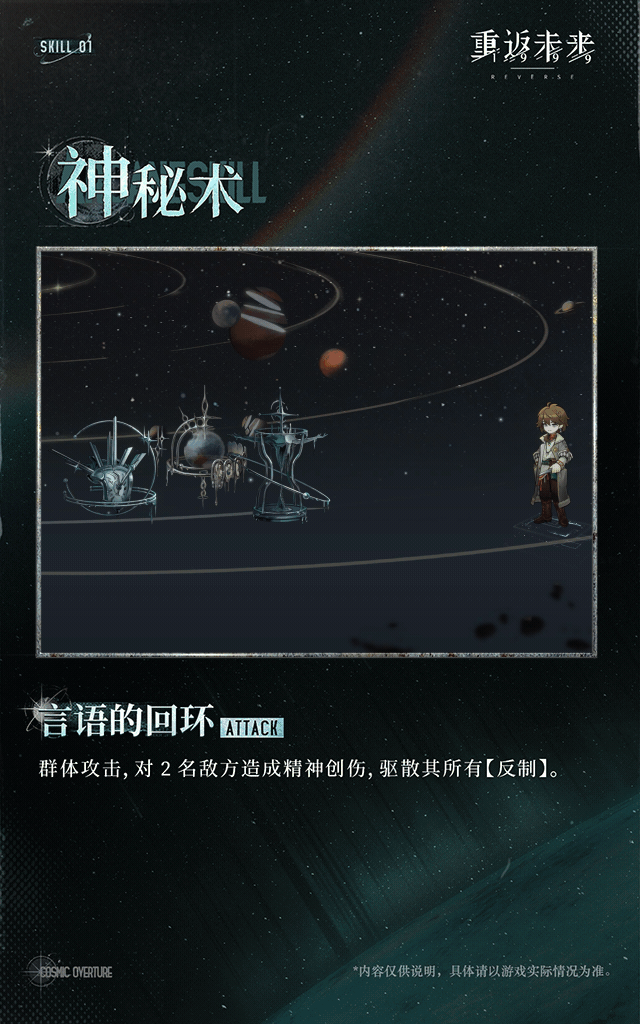 效果:对2名敌方造成120%-300%精神创伤,2阶后驱散目标所有【反制】。