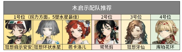 配队推荐:狂想启示泥鯭的士/(狂想)环状水星/芭卡洛儿+鹭鸶剪+狂想牙仙+库珀花环
