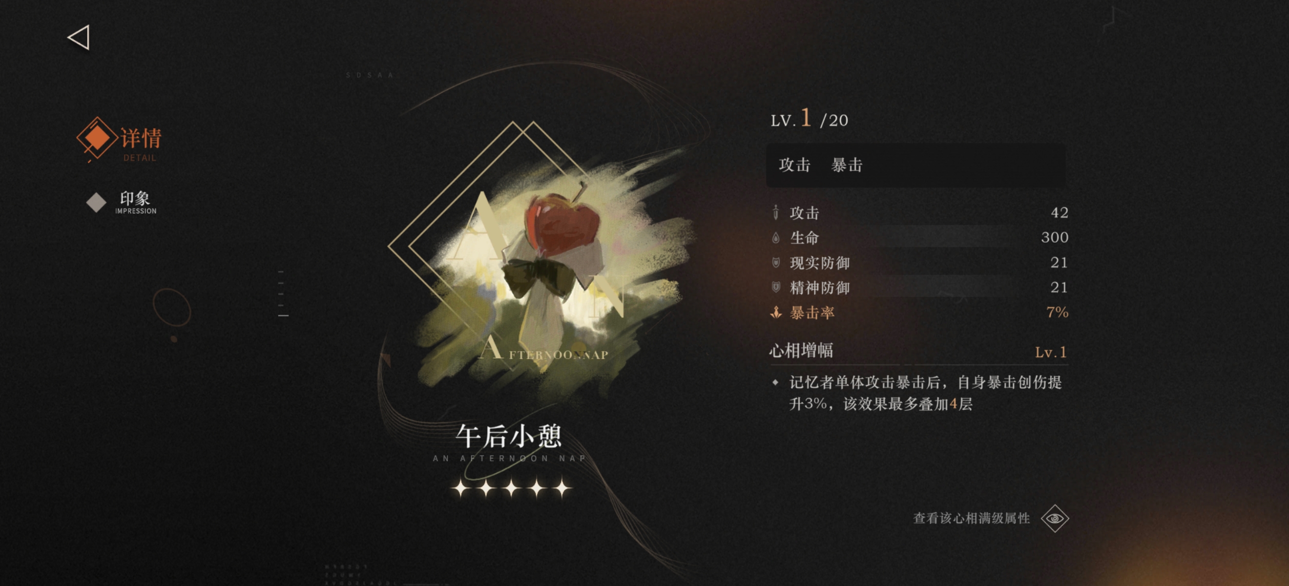 提供暴击率加成,是五星心相中的优质选择,但其增幅不享受红弩箭传承三的增益。