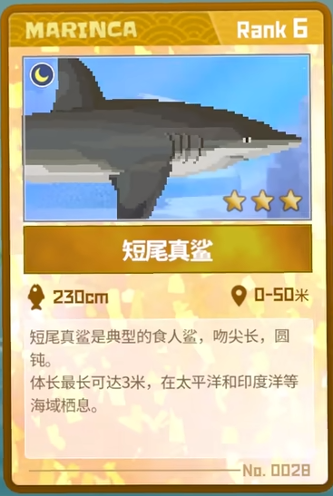 潜水员戴夫短尾真鲨怎么抓?在潜水员戴夫中,玩家在去各个海域的时候会遇到一些鱼类,这些鱼类都是可以捕捉到的,有些鱼类是只在晚上出没的,所以只有晚上才可以抓到,今天就给大家详细说明一下短尾真鲨的捕捉方法。