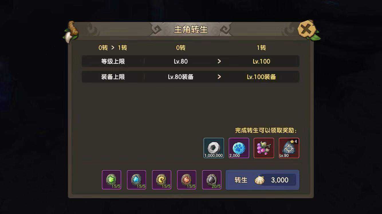 6、随后玩家需点击角色转生图标,然后会进入转生消耗资源的界面,此时点击确认即可开启转生。