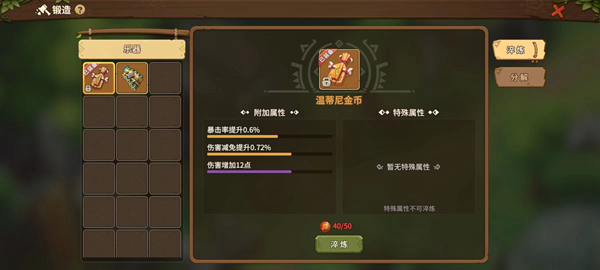 2.锻造系统有两个功能,分别是分解、淬炼。我们分解装备时,可以几率获得乐器淬炼石。然后消耗淬炼石,即可淬炼乐器的附加属性。