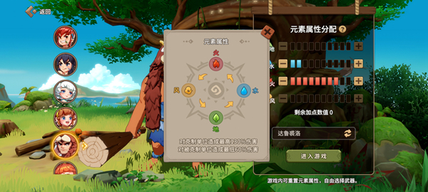 1.石器时代觉醒中有四种元素属性,分别是火、风、水、地,这四种元素属性相生相克。其中火克风,风克地,地克水,水克火。玩家创建角色时,最多可以同时选择2种元素,总共有10个元素属性点可以分配。因此玩家即可以把单个属性拉满,也可以分开选择两个不同的属性。至于怎么选择,下面给大家说一下。
