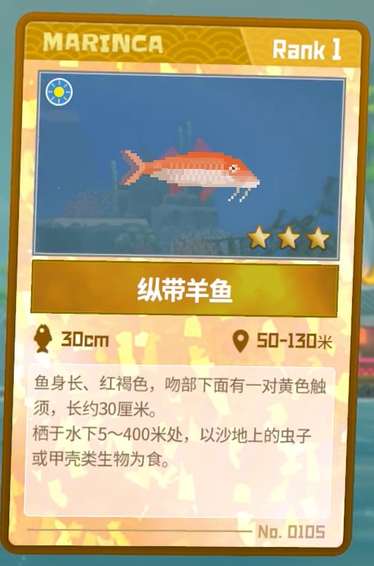 捕捉方法:纵带羊鱼和活动范围十分广泛,会在5-400米地沙地处随机刷新,刷新出来后玩家可以用网枪或消音飞镖捕获。