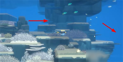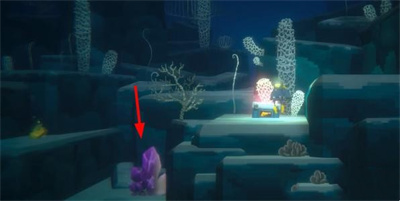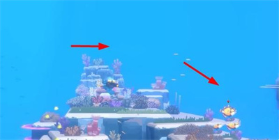 1.首先完成任务调查可疑珊瑚,从章鱼洞穴出来向右下方游动。