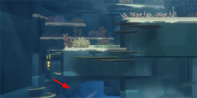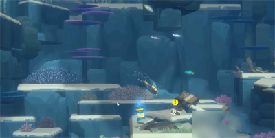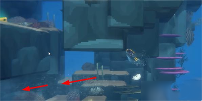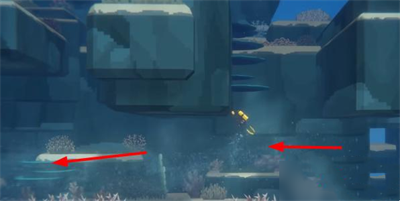 1.首先完成任务调查可疑珊瑚,从章鱼洞穴出来向右下方游动。
