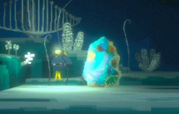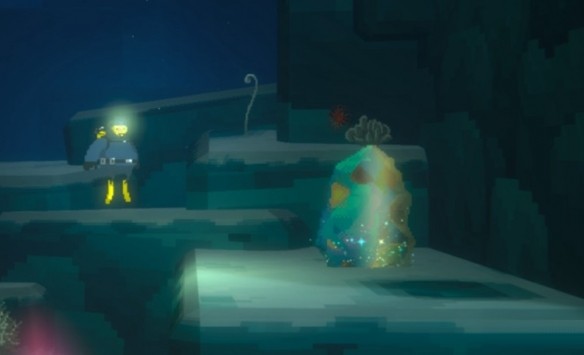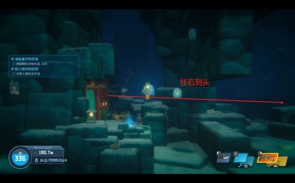 出了鲛人村,前往深海地区。遇到巨口鲨之后左拐,游到头,有一条向上的通道,生活着一群水母,通过通道即可看到矿石