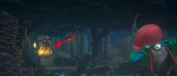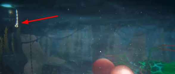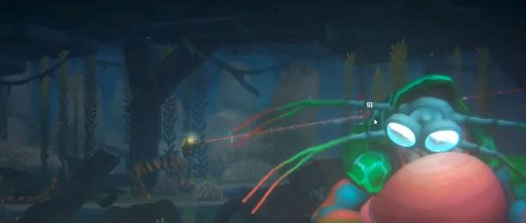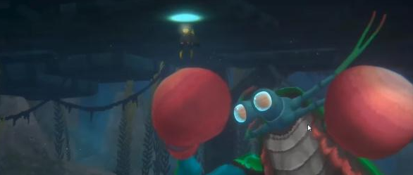 1、我们首先来到螳螂虾的位置,然后游到顶上躲避螳螂虾的攻击。
