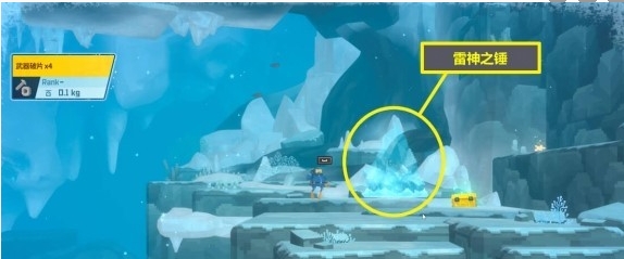 1、位置:雷神之锤会在冰河区域随机的冰块内出现,可以用近战攻击打碎冰块来获得。
