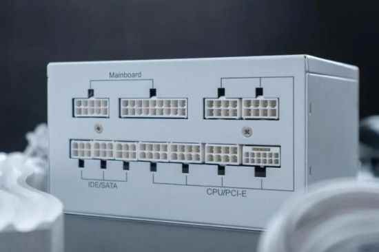 电源的背部提供了各种输出接口,包括一个主板供电接口、两个CPU供电接口、多个SATA接口和6个符合PCIe规范的接口。其中还有一个原生支持PCIe 5.0规范的12VHPWR接口,能为支持PCIe 5.0的显卡提供高达600W的功耗。全模组设计使得玩家能够更便捷地搭配使用,减少了冗余线缆所占据的空间。