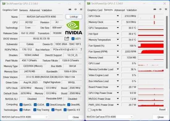 首先提供一下测试平台参数,本次测试平台处理器采用Intel Core i9-12900k,主板上选择了影驰Z690金属大师 主板,内存采用芝奇幻锋戟 DDR5 6000Hz 16GB*2;固态上选择的也是 影驰 所推出的HOF Pro 2TB。优异的配置上影驰 GeForce RTX 4090 金属大师 AIO OC 的性能以最大程度稳定的发挥,展示在玩家们的眼前。 GPU-Z