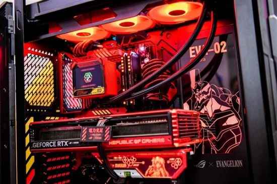 在ROG×EVANGELION电竞房展区内,全套ROG×EVA-02全家桶震撼亮相,采用ROG STRIX RTX4090新世纪福音战士丨限量版显卡,显卡的外形以《新世纪福音战士》中EVA-02机体与驾驶员明日香造型元素为原型,采用2号机标志性的红色装甲涂装,并加以绿色、黄色、黑色融入原设计之中,高度还原了2号机的形象!显卡背面的大面积明日香形象,让不同领域的经典元素在此相遇、碰撞,彰显出“强强联手”的热血魅力!