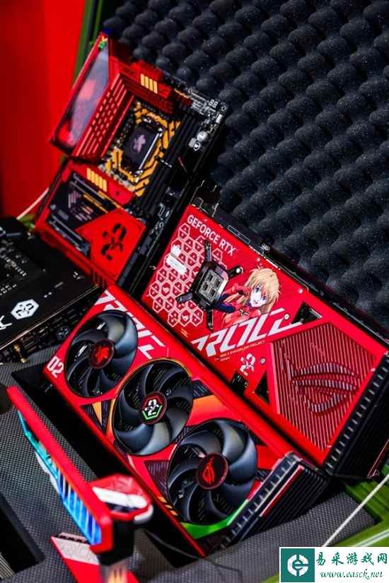 在ROG×EVANGELION电竞房展区内,全套ROG×EVA-02全家桶震撼亮相,采用ROG STRIX RTX4090新世纪福音战士丨限量版显卡,显卡的外形以《新世纪福音战士》中EVA-02机体与驾驶员明日香造型元素为原型,采用2号机标志性的红色装甲涂装,并加以绿色、黄色、黑色融入原设计之中,高度还原了2号机的形象!显卡背面的大面积明日香形象,让不同领域的经典元素在此相遇、碰撞,彰显出“强强联手”的热血魅力!