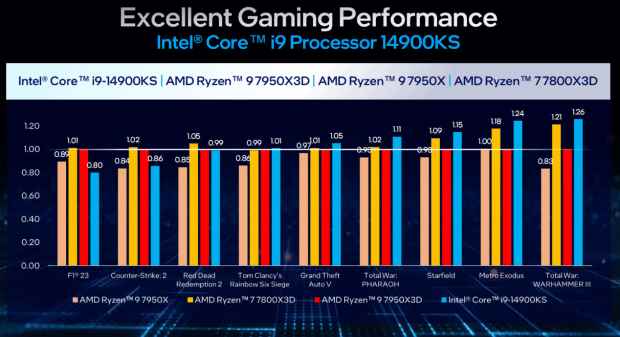 显存方面,三星于GTC 2024大会中展示的专为下一代游戏GPU设计的GDDR7显存或将在RTX 5090显卡中首次应用,显存位宽方面可能是384-bit,显存带宽有望大幅增加,SM阵列数量则可能从144个增加到192个。 功耗方面,同样基于Blackwell架构的B200已经来到了1000W,想来RTX 50系列显卡的功耗也不会低,旗舰RTX 5090功耗或有可能超过600W。 除了上述之外,有消息称RTX 50系列还将支持PCIe 5.0与DisplayPort 2.1。 Intel 14代酷睿旗舰i9-14900KS正式发布 Intel于近日正式发布了14代酷睿限量旗舰——i9-14900KS。该CPU的国行定价果然如此前预料般突破了6000大关,来到了6299元。