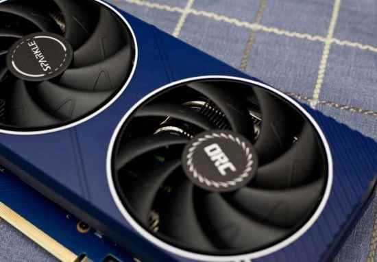 在散热方面,撼与科技Intel Arc A750兽人搭载了双风扇的TRON散热,它有大面积的散热鳍片以及高性能热管,上面是两把定制的AXL风扇,这两把风扇不仅有优化气流的条纹,风噪以及能效会更好,而且自带的低负载停转功能还可以让显卡在大部分时候保持0噪音的使用效果。