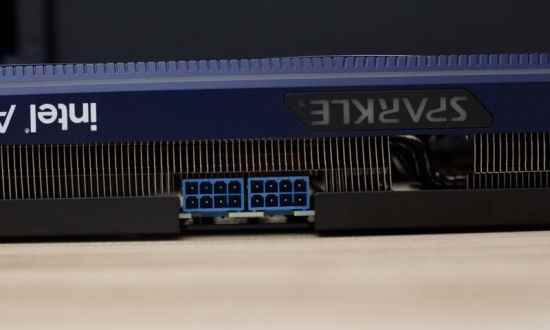 在显卡的供电接口方面,Sparkle(撼与科技)Intel Arc A770 TITAN 16GD6给到了两个8pin的接口,这里两个接口同样是蓝色的设计,与显卡整体配色保持一致,带动225W的功耗是完全没问题的。