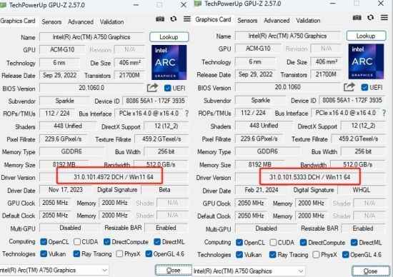 目前锐炫显卡最新驱动版本来到了5333 WHQL,而对比的驱动为4972 WHQL版驱动,看看两者又多大变化。