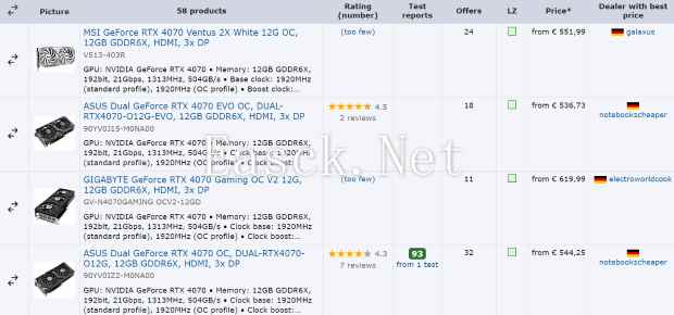 有用户反馈称,Intel的RMA流程似乎并不严格审核是否真的遇到了稳定性问题,这使得一些几乎未遇到问题的用户也有机会获得退款或换新。 国外网友@Pk_419在社交媒体上分享称,他将使用了两年且功能正常的i9-13900K处理器退回,并获得了599美元的全额退款,而Intel在这一过程中并未要求他提供任何关于不稳定问题的证明。 Reddit上的另一位用户也报告称,他的i9-13900K因“严重”不稳定问题提交RMA后,仅用三天便顺利完成换新,并且换得的是一颗升级版型号——i9-14900K。 Intel官方也提到,当13代CPU库存耗尽时,将会把13代CPU升级到更新的版本。 德国RTX 4070 GDDR6竟比GDDR6X价更高 在不久前,NVIDIA发布了新版的RTX 4070显卡,新显卡将原本的21GHz GDDR6X显存降级为20GHz GDDR6,其余完全不变,官方称性能基本一致。该显卡在价格方面延续了NVIDIA减量不减价的“优良传统”。