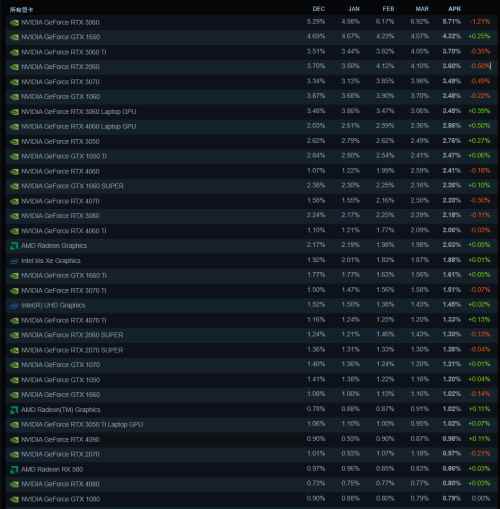 新一期Steam硬件调查报告出炉 RTX 3060继续霸榜