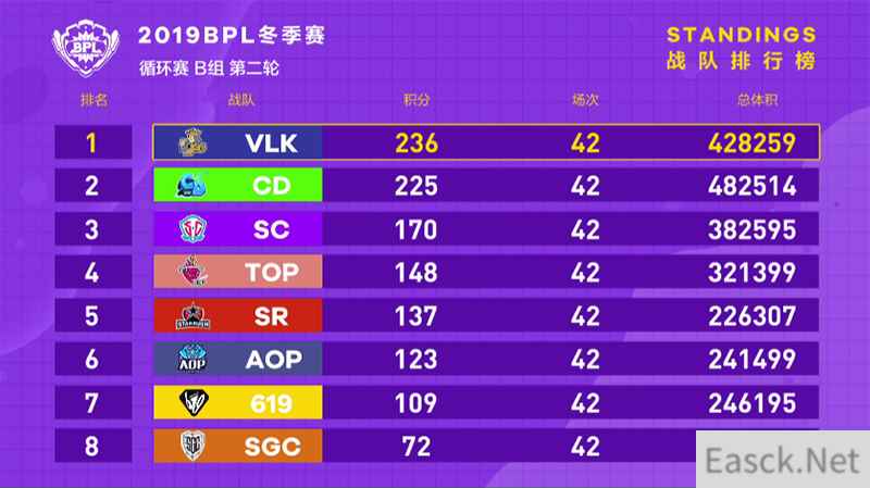 上周比赛表现TOP的队伍非GOT莫属, 循环赛阶段一直与GHT积分攀咬很紧的他们,在常规赛最后一周一路高歌猛进,拿下75分直接晋级到胜者组第二轮。同样找回状态的还有CD,在上周单日即拿下52分,虽然最后以微小差距暂居VLK之后,但他们已经证明了自己的实力。同样令人惊喜的还有STS,这支常规赛一直积分垫底的战队此前不被看好,却不屈不挠,在循环赛最后一周中为自己谋求了一条生路。