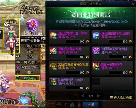 【前言】 1月11日新春版本上线了大量新增活动,玩家们可以获得丰厚的奖励,这就让我们一起来看看本次维护都带来了哪些活动更新吧! 【一】赛丽亚的特别商店