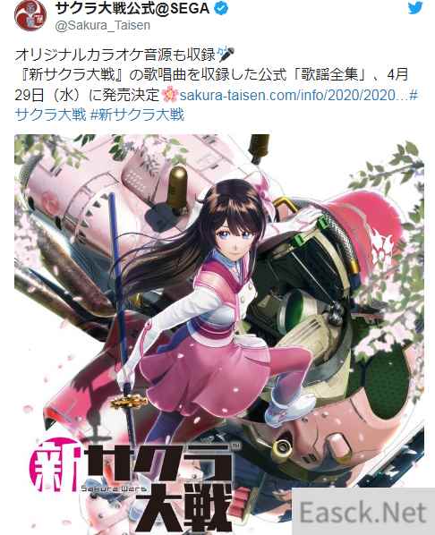 世嘉旗下经典游戏新作《新樱花大战》已经于2019年12月12日在日本地区推出,登陆PS4平台,近日官方宣布,收录了《新樱花大战》全部歌谣的原声大碟将于4月29日发售,包括经典主题曲新版在内的诸多名曲都将收入其中。
