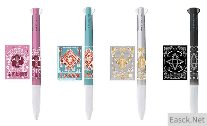 《新樱花大战》游戏主题圆珠笔售价1000日元(不含税),总共有4款,分别对应帝国华击团、上海华击团、伦敦华击团以及柏林华击团,2020年2月上市。 主题贴纸