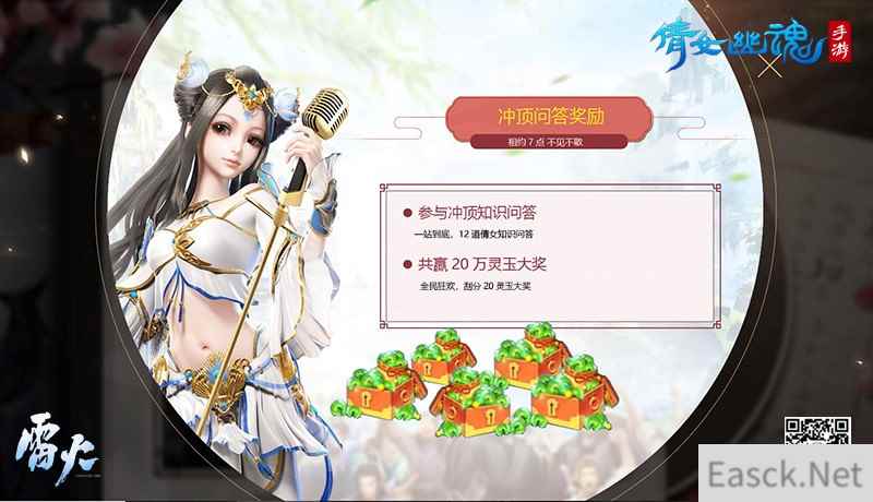 【趣味冲顶问答 刮分20万灵玉大奖】 新年在即,好运连连。演唱会最后还为大家准备了有趣的冲顶问答环节,参与冲顶答题将有机会刮分20万灵玉大奖。想要参加倩女冲顶大会,需要提前下载好网易CC手机版才能参与答题,冲顶题目略有难度,但是都是和游戏相关的,尤其是和开发组爆料环节相关。答对12题的小伙伴,就能刮分20万灵玉大奖!今晚7点相约网易CC倩女手游新年歌王争霸赛直播间,我们不见不散!