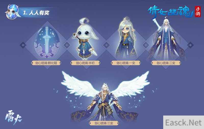 【超萌吉祥物养成,瓜分50万大奖】 报名参赛的玩家都将获得本次大赛的吉祥物剑心琉璃,剑心琉璃拥有五种神秘形态,活动期间使用育灵丹对其进行培育,可以解锁其不同形态,若使用道具五彩羽还可解锁剑心琉璃的更多材质!玩家可以将其做成炫酷的灵兽外观,届时行走在三界回头率必将暴增!