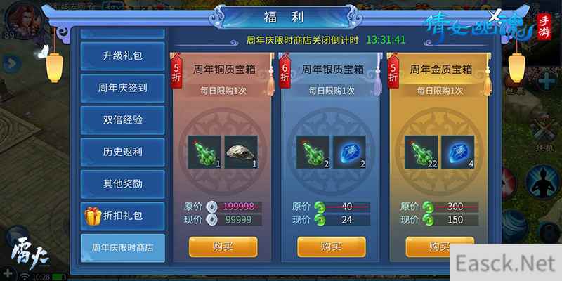 同时为了回馈广大倩女玩家,周年庆限时商店还上架了超值宝箱,还上架了超值宝箱,每天三款,天天不同!无论你是家园装修党还是灵兽培育家,是装备巨匠还是育马大师,总有一款适合你!