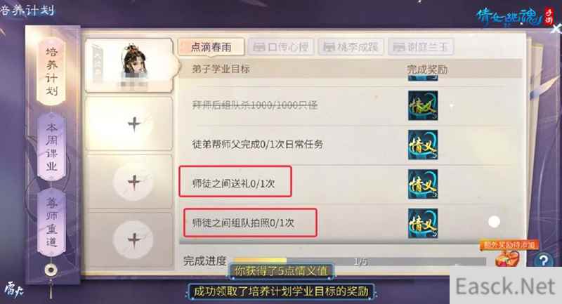 全新的师徒培养计划由三部分组成:培养计划、每周课业以及尊师重道。【培养计划】新优化了4个阶段,同时增添了许多趣味任务;【每周课业】将列出4条每周任务,任务完成时,师徒都可领取相应奖励!【尊师重道】可以让徒弟为师父完成任务。完成任务后即可获得情义值,可兑换玫瑰、往生菩提等丰富道具。小伙伴们快喊上师父或徒弟一起体验吧!