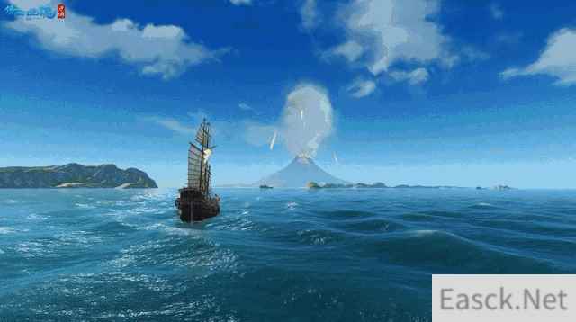 【乘风破浪赴海远航,沉浸体验天气跌宕】 风浪越大,鱼越贵。仙海之上除了晴空万里,更有乌云密布,暴雨交加之时。目前三界之后仅有杭州与金沙镜可以感受到昼夜的更迭,晴雨的变化,仙海的出现更是将天气系统做到极度真实。除此之外,玩家们还能看到不远处正有火山喷发,海的尽头有着更多未知等待小伙伴们前往探寻,你会是三界中最勇敢的航海王吗?
