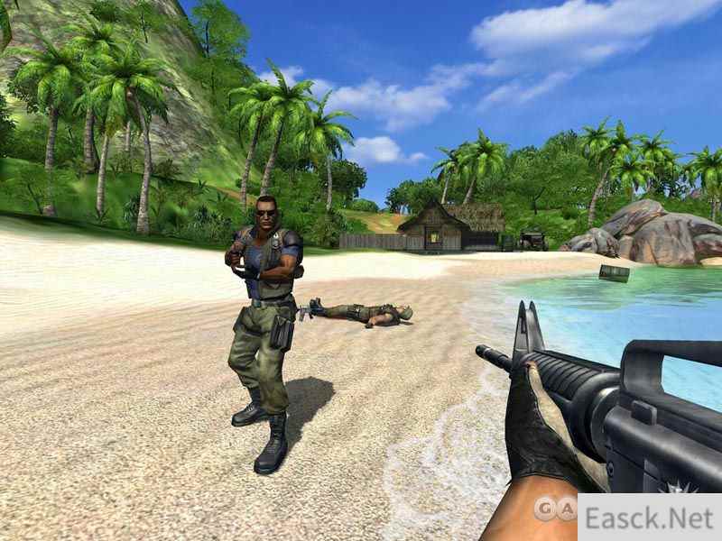 本作采用完全开放的地图引擎,3D制图更是栩栩如生,蓝天白云、清澈的海水、金黄的沙滩、茂密的热带森林看上去不自然的给人一种恬静的感觉,然而如果你一旦松懈了,那么你眼前一切都有可能在一秒钟后被鲜血染红。当你在沙滩上漫步的时候敌人的机枪快艇会从你的身边呼啸而过,当你气喘吁吁的躲进岸边的礁石群,敌人的巡逻吉普车早就把你的出路死死封锁,当你以为好不容易挣扎着逃进灌木丛的时候,敌人猎手的尖刀上已经倒映出你那因为恐惧而扭曲的脸…… 当然,这一切都是在你还没有武器的情况下不得已而为之的。在这个只有更强者才能生存的小岛上,我们只能变的更强。而什么才能使我们更具有战斗力呢?对了,就是武器!我们要抢夺敌人的枪械,掠夺敌人的交通工具(这里包括前边提到的吉普车、快艇、甚至是滑翔机),占据敌人的有利地形。在最有利的情况下使形势逆转。