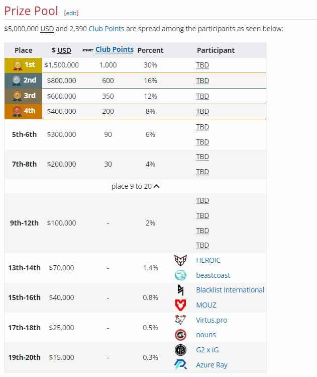 利雅得大师赛奖金池和俱乐部点数分配情况:冠军拿150万美元和1000积分