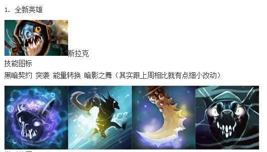 改动日志: - 加入斯拉克! - 加入聊天轮盘,方便与队友快速交流! - 加入热键模板的使用支持! 物品 - 现在联赛掉落机制对所有联赛生效。(装备队旗后观看联赛时目击一血,连杀等事件时有机会获得物品,现在掉落物品未知) 游戏性 - 现在拉比克施放窃取的墓碑将不会产生小僵尸去攻击不朽尸王的僵尸。 用户界面 - 增加了征求全新聊天轮盘选项的表格。 - 加入世界热点图,可以查看当前玩家的分布情况。 - 现在采用alt+其他键的技能和物品快捷键将正确显示。 视觉特效 - 修复暗夜魔王在夜晚出现翅膀丢失的问题。 新英雄斯拉克: