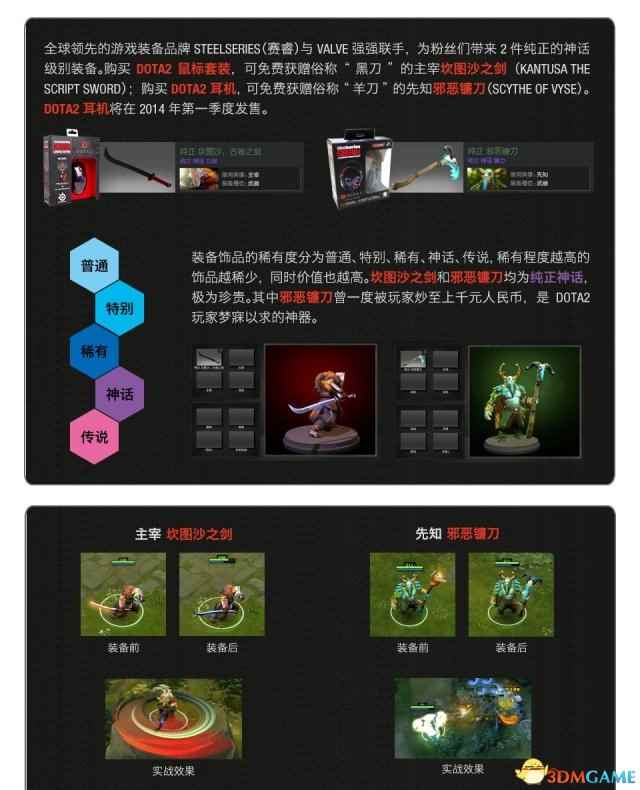 神话道具 赛睿Kana DOTA2鼠标套装到货 世界领先游戏外设制造商,丹麦SteelSeries(赛睿)正式宣布与VALVE合作的Kana DOTA2鼠标套装国内正式到货,建议零售价499元人民币。