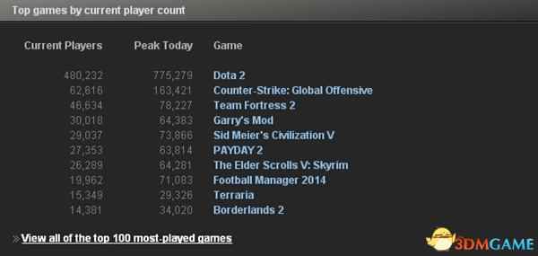 PC游戏崛起 Steam同时在线用户创纪录 DOTA2称王