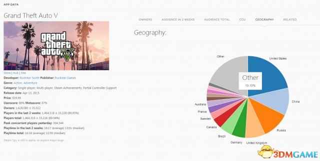关于《CS:GO》我们不多做描述,而排名第三的则是《GTA5》,《GTA5》的游戏总持有率占全球的11.2%,仅次于美国的21.8%。不过值得一提的是,在全球总榜方面《GTA5》的排名是第四,第三则被《军团要塞》所占据。