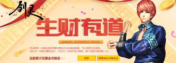 生财有道 “生财有道”活动截至9月18日,期间只要玩家通过指定途径积累花费金币达到指定数量,就可以领取对应奖励。