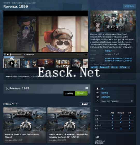 锁国区但支持中文 《重返未来:1999》登录Steam